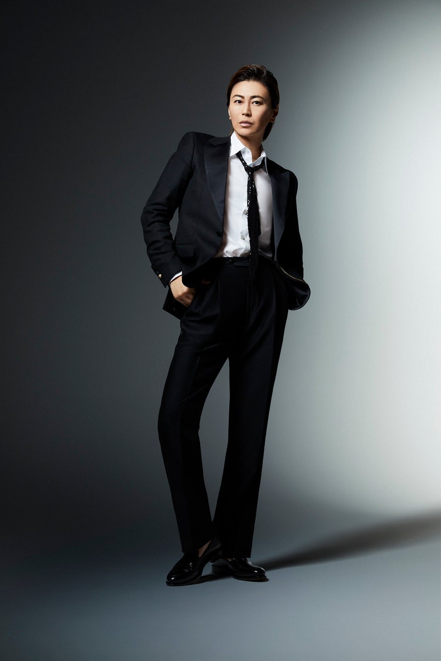 本日公開されたビジュアルは、5月下旬、都内のスタジオで撮影され、黒のシックなパンツスーツスタイル。