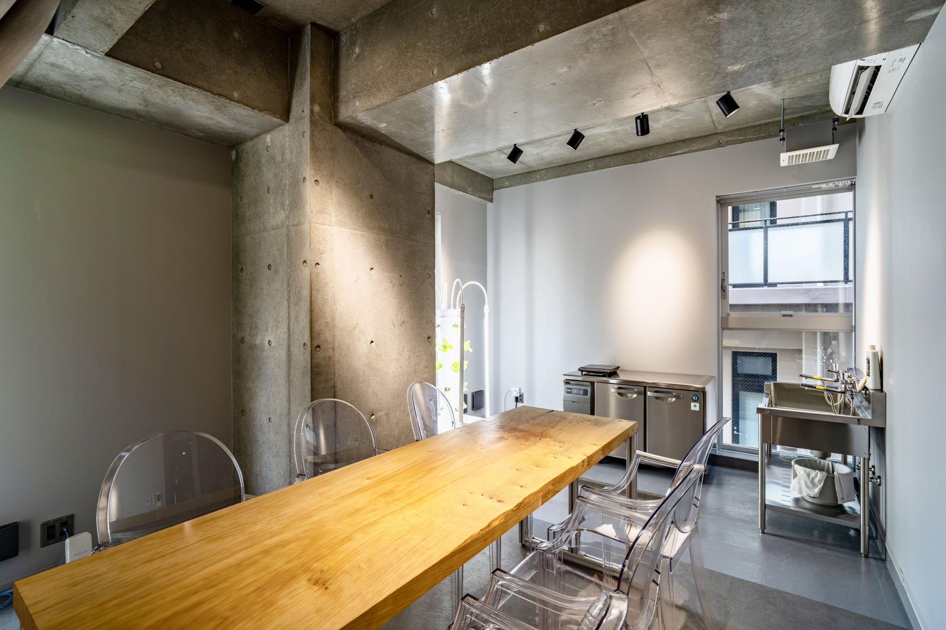 オフィスには実験室を兼ね備えた会議室「Laboratory」があり、会議を行う空間としてではなく、水耕栽培や実験なども行えるようにフロアの一部が防水仕様になっています。利用者のニーズに合わせて機材を導入できる”進化型ラボ”となっており、公園や屋上菜園で仕事をすることもできます。