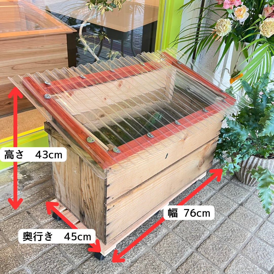 ●長持ちするよう、りんご箱の板を内側から補強しています。また、サイドの隙間には網を貼り、虫や小動物がはいりにくいようにしています。