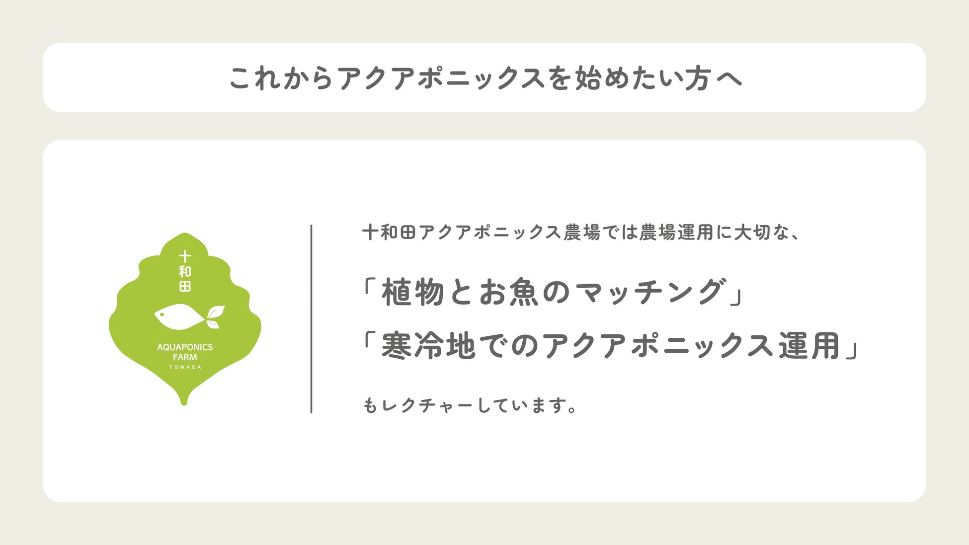 アクアポニックスは、環境に優しく持続可能な農業システムであり、魚の養殖と植物の水耕栽培を組み合わせた新しい農法です。水、化学肥料、農薬の使用を大幅に削減し、効率的で多様な食材を生産できます。十和田アクアポニックス農場は、この新しい農法を通じて、企業や法人に向けてアクアポニックスの魅力を提案しています。