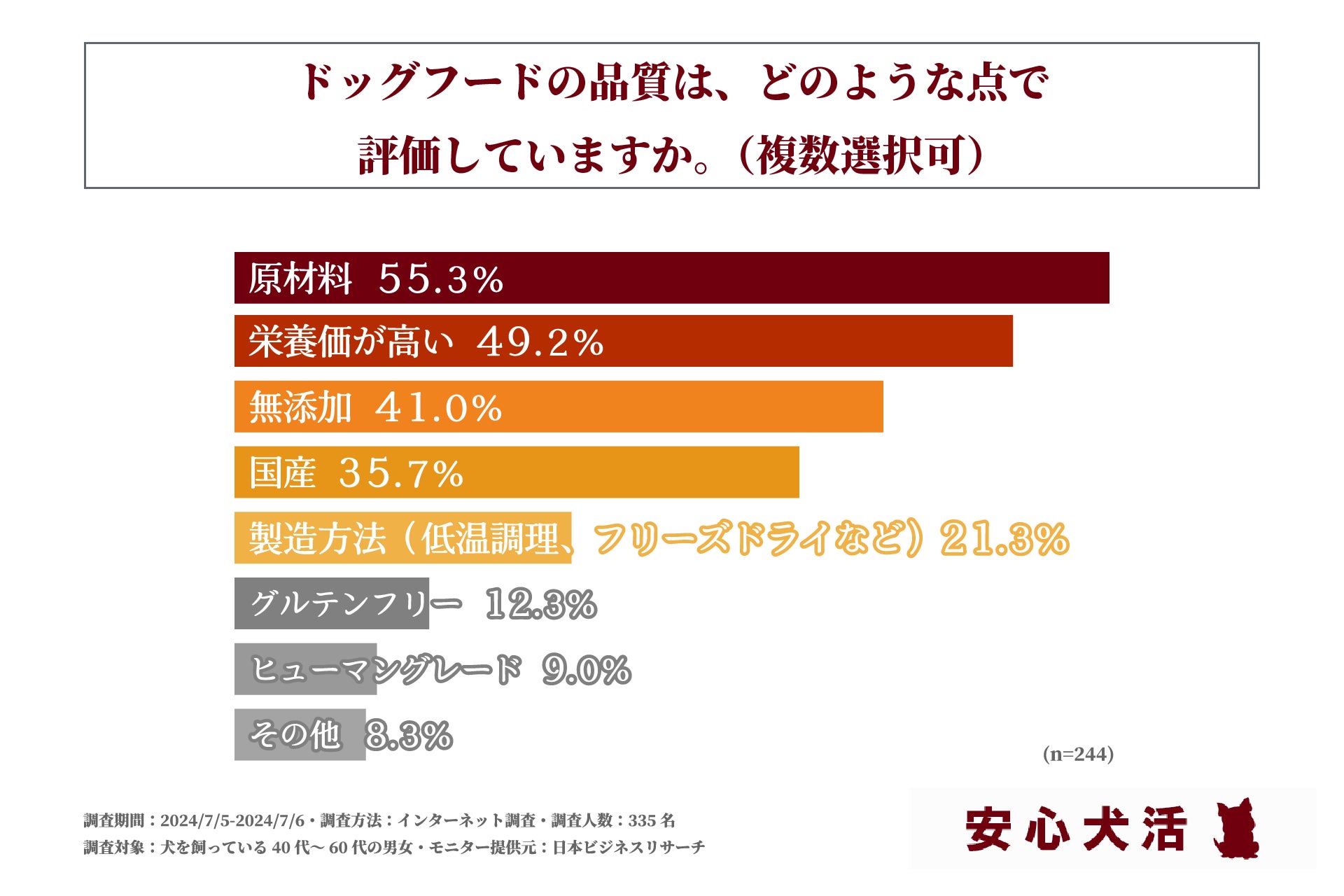 この調査結果から、犬を飼っている方がどのようなこだわりや基準をもってドッグフード選びをしているか等が明らかになりました。