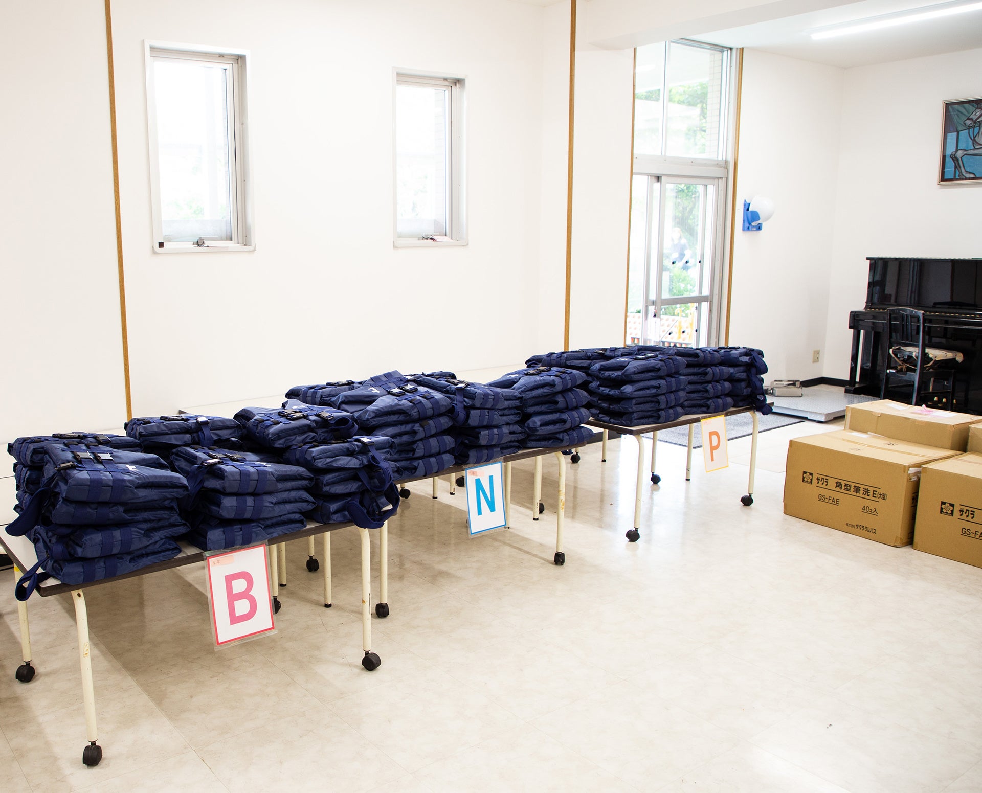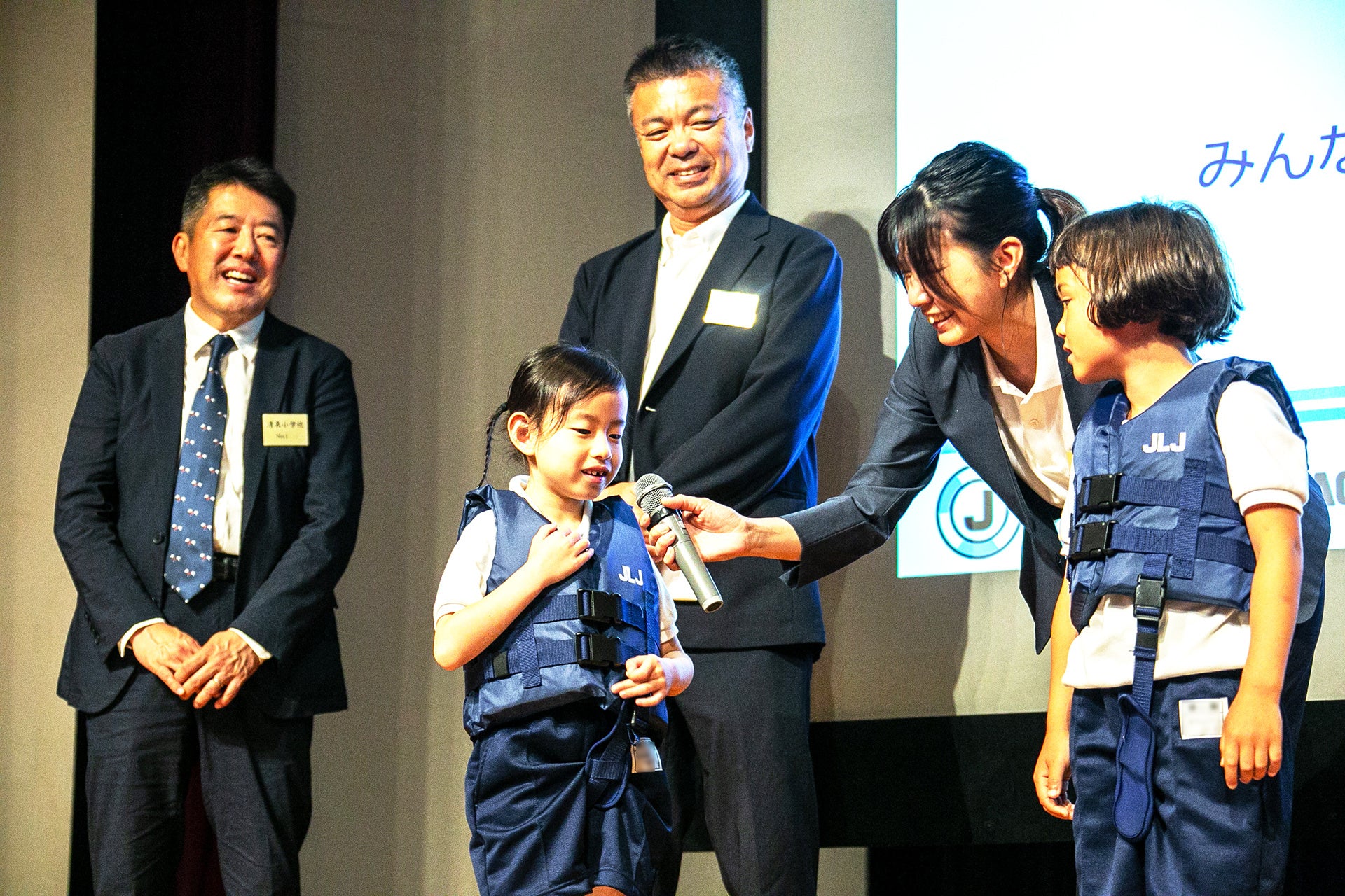 新入学の1年生に対して、100着のJLJライフジャケットの寄贈式が行われました。