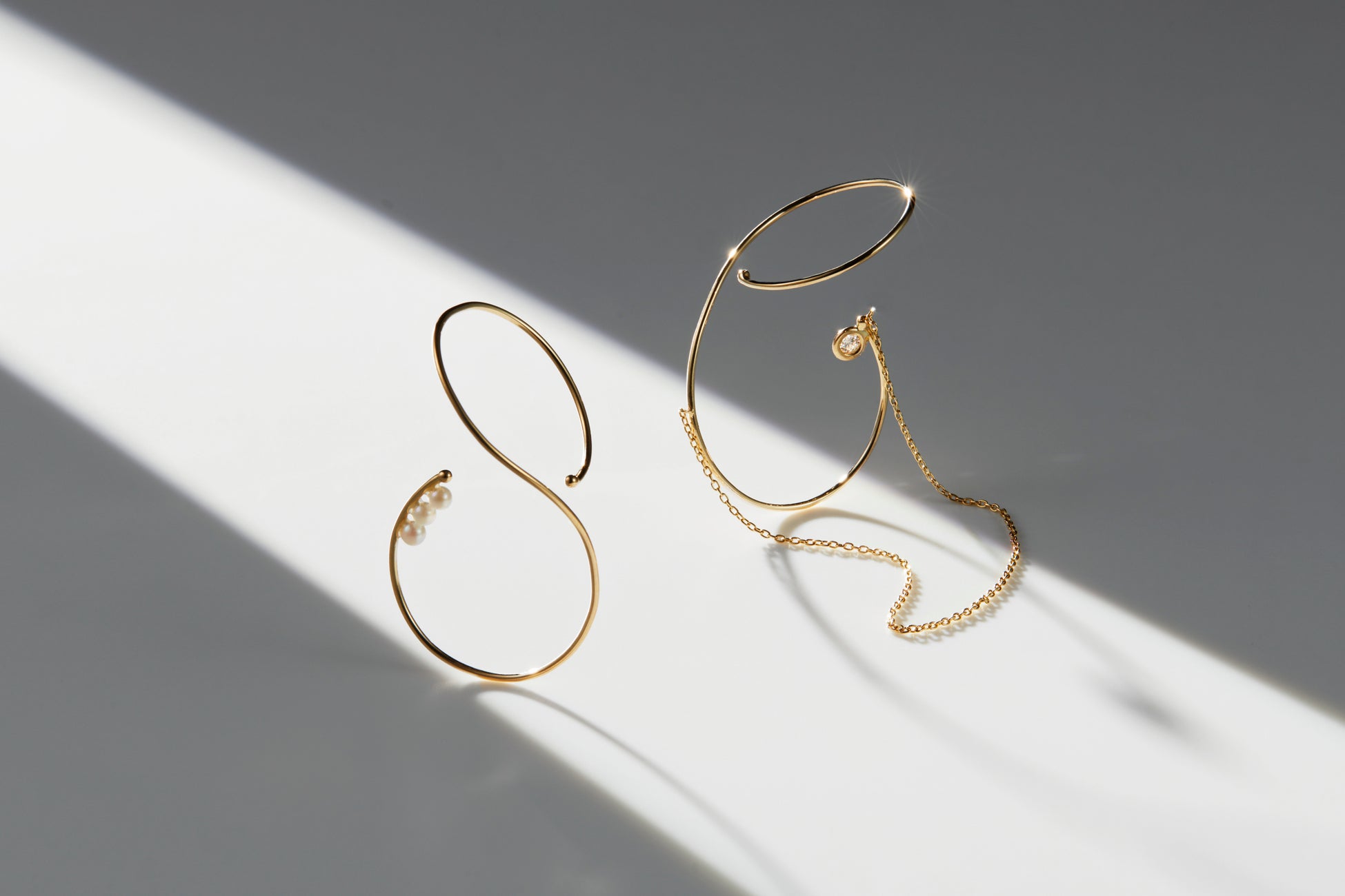 シルバー素材の大振りなファッションジュエリーやK10、K18の華奢なコレクション、天然石を使った1点モノやブライダルラインなど幅広く展開