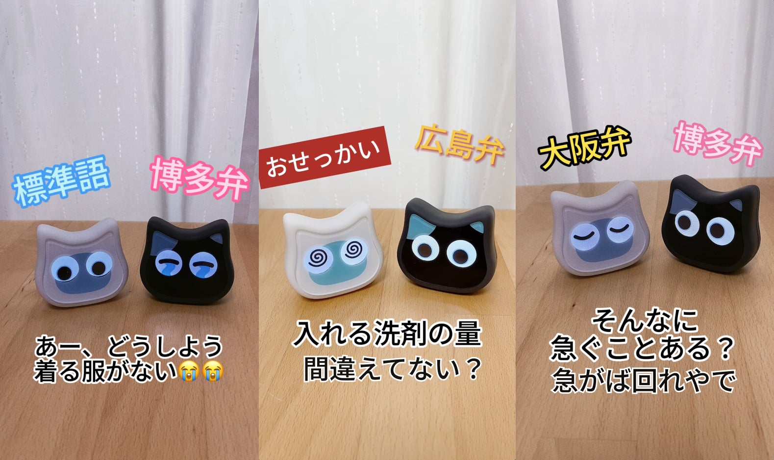 手のひらサイズの可愛らしい猫型ロボットで、100種類以上の豊かな表情で様々な性格や方言で、思わずクスッと笑えるような楽しい・面白いフレーズを話しかけてくれます。