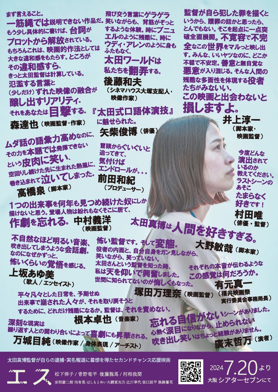 東京公開時、『エス』には中村義洋監督(『劇場版 ほんとにあった!呪いのビデオ100』)、脚本家・大野敏哉氏(『不死身ラヴァーズ』)、脚本家・高橋泉氏(『東京リベンジャーズ』)ら著名人からのコメントが寄せられました。