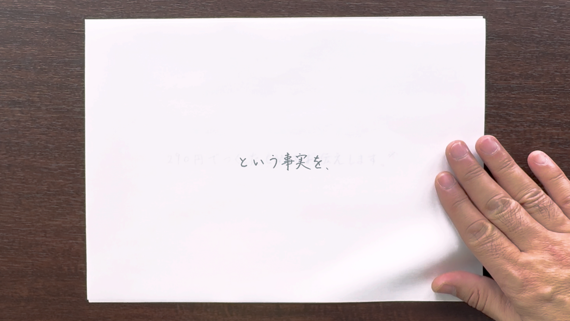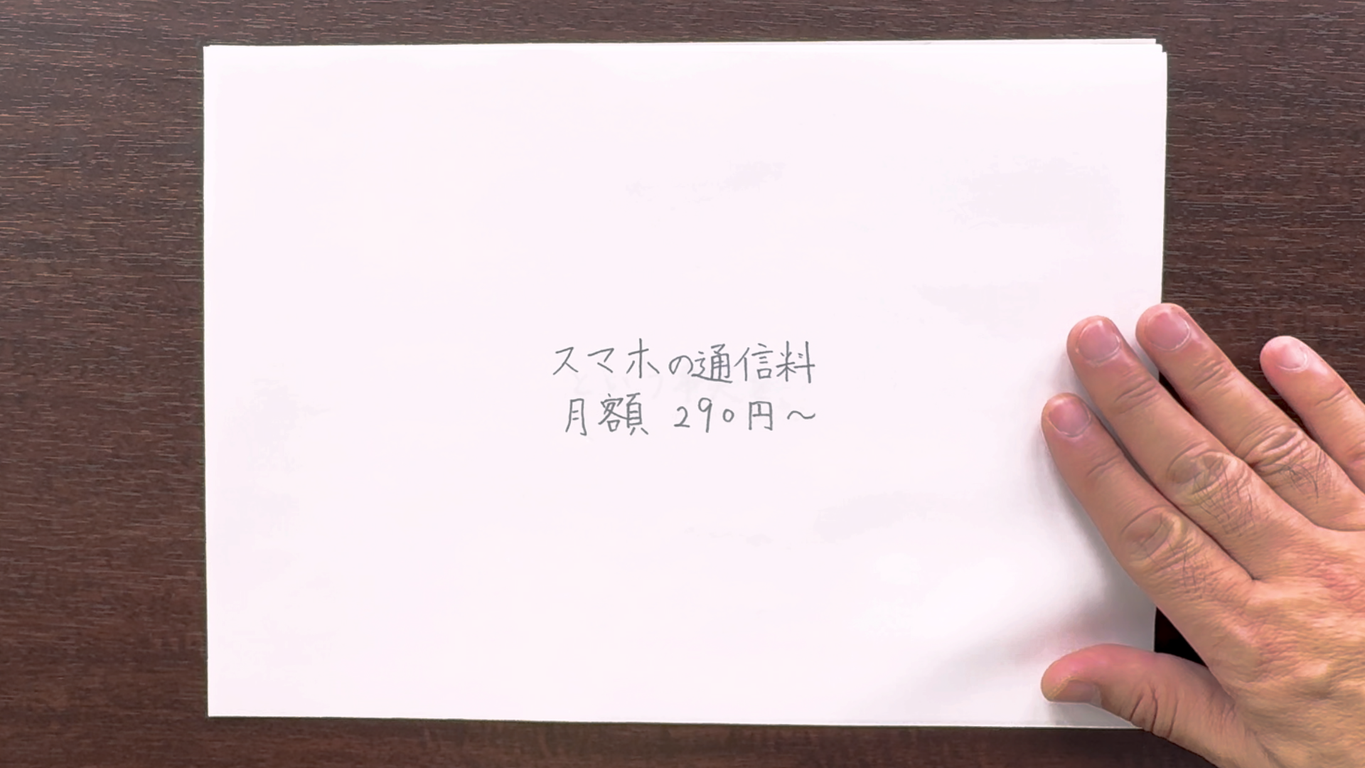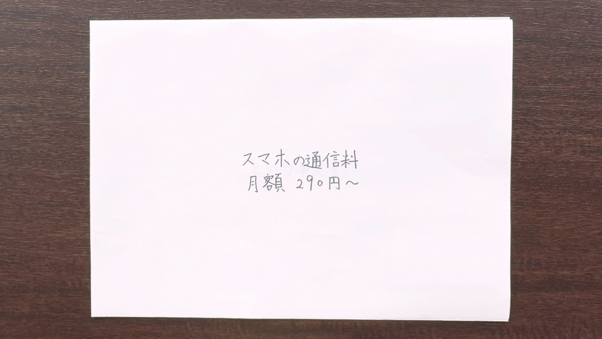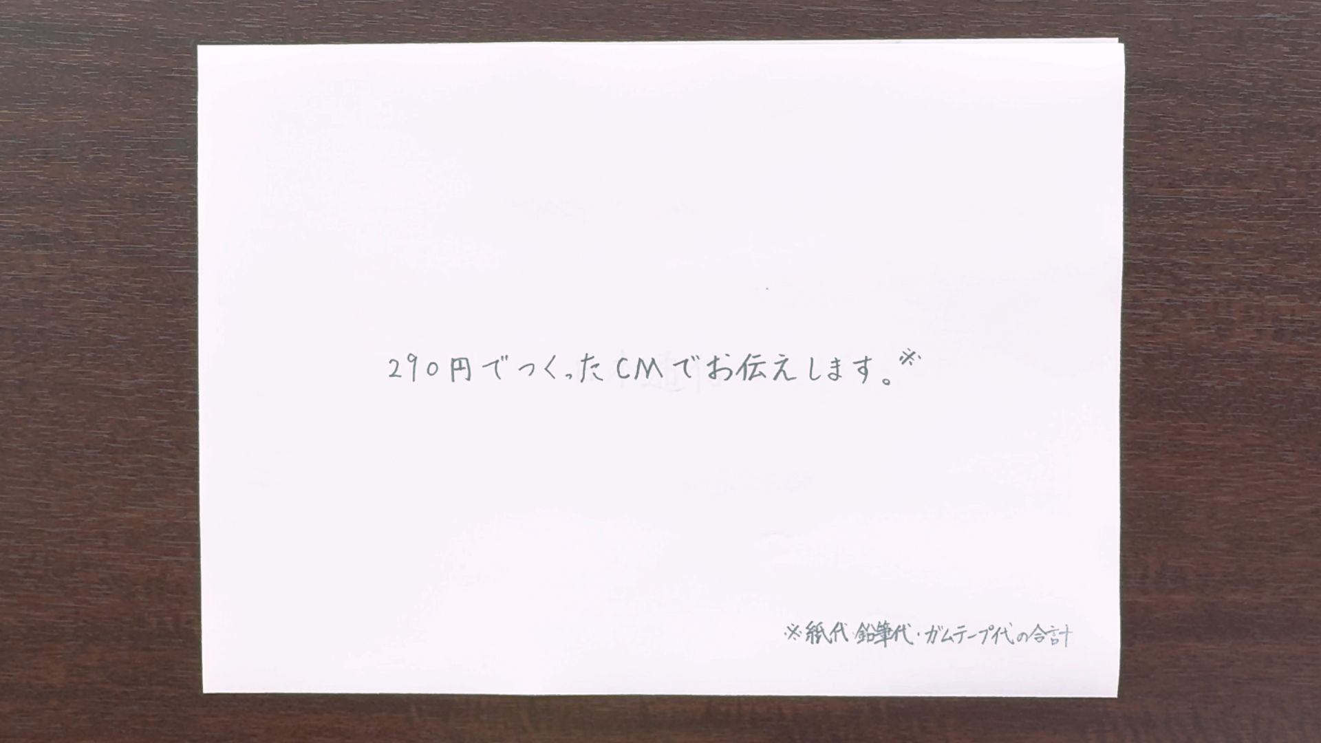 本CMで使用したのはえんぴつ、A4用紙、ガムテープのみ。※1メッセージの書かれた紙を、次々とめくっていきスマホの通信料月額290円~という事実をスマートフォンで撮影した動画で伝えていきます。