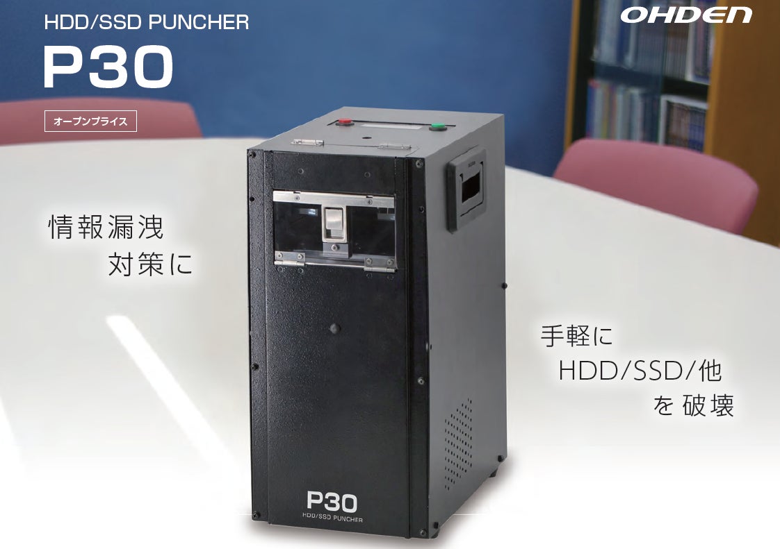 データセキュリティ対策の新たな一歩として、オーデン株式会社は最新のHDD/SDDパンチャー(電動破壊機)「P30」を発売いたします。「P30」は、2024年7月1日より全国の取扱店およびオンラインショップで購入可能です。「P30」は、重要なデータを物理的に破壊することで、情報漏洩のリスクを根本的に排除します。設置は簡単で、操作もシンプル。社内でご利用可能で外部委託コストを抑えながら、高度なセキュリティ対策を実現します。データ保護の重要性が高まる中、HDD/SSDパンチャー 「P30」は信頼できるソリューションとして、皆様のデータセキュリティを強力にサポートします。