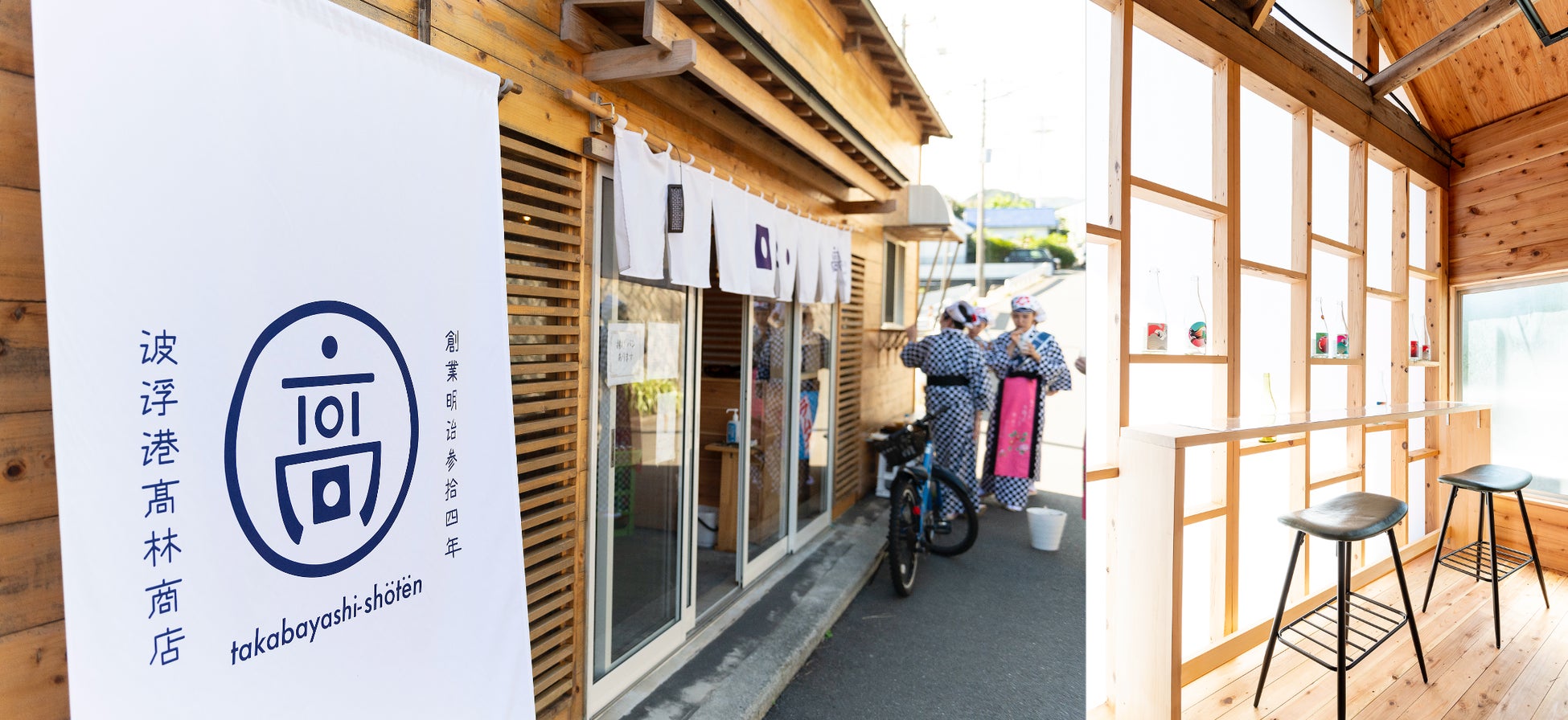◎写真下左:高林商店の隣にある角打ちスペース。「Habuminato Brewery」の生ビールを提供。