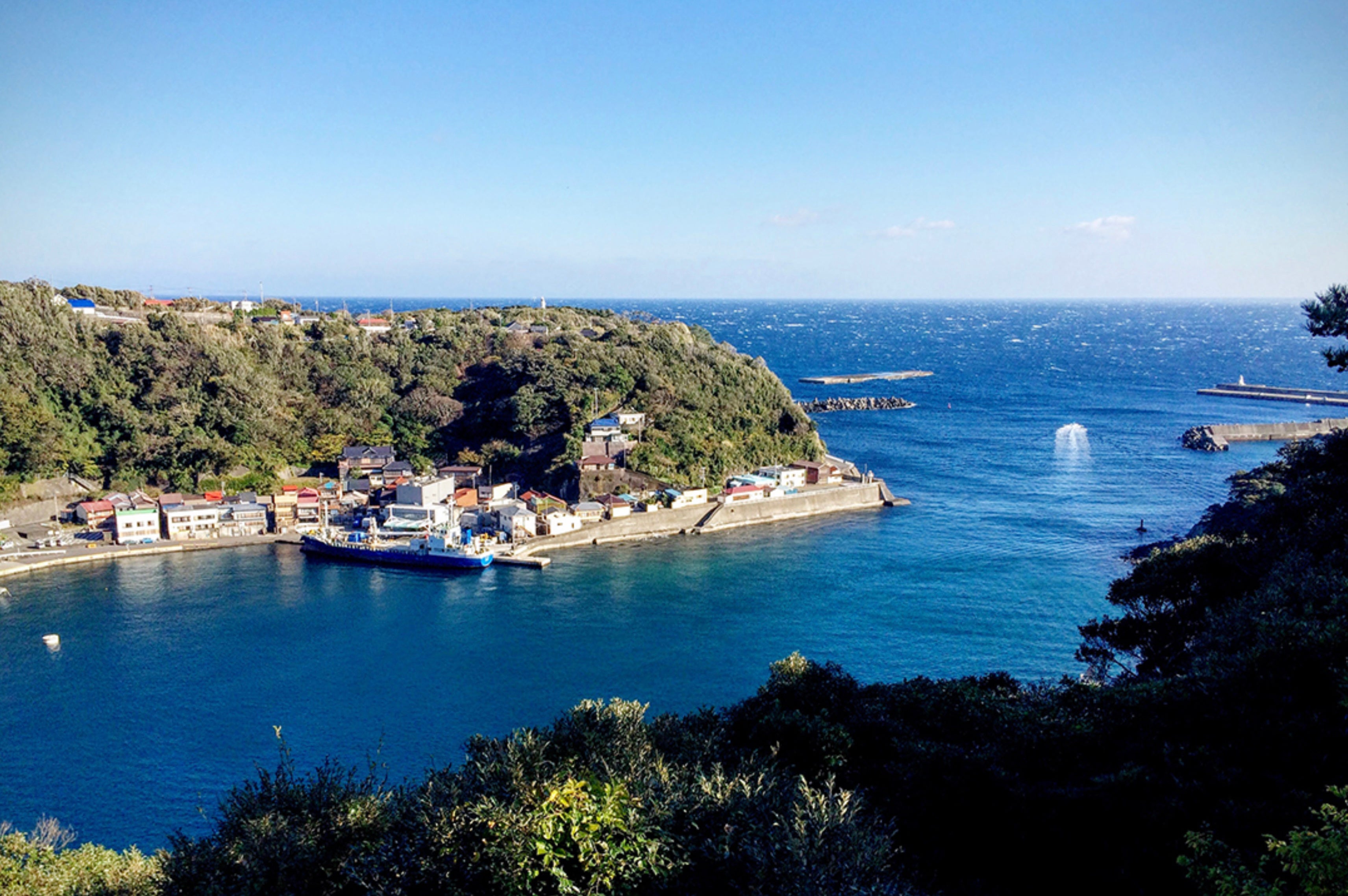 ◎写真下右:「波浮港見晴台」から眺める波浮港の景色。