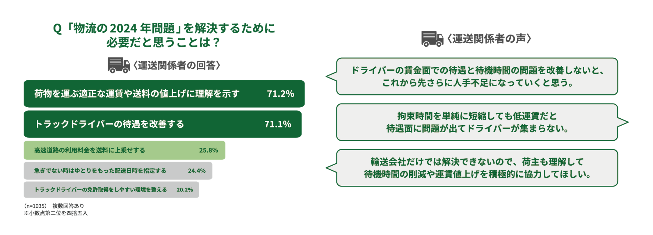 ③運送関係者からは「運賃・送料の見直し」や「トラックドライバーの待遇改善」を求める声が