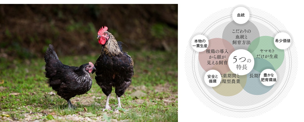 世界中の“美味しい鶏”を探し求めてたどり着いたフランスの血統から誕生した「丹波黒どり」は漆黒の羽毛と深い味わいが特徴。