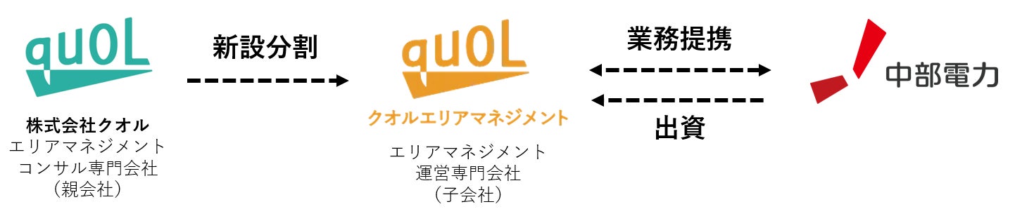 エリアマネジメント専門会社の株式会社クオル(以下、クオル社)が、新設分割を行い2024年6月3日に設立した新会社に中部電力からの出資を引き受けました。クオル社がこれまで約20年に渡り実践してきた技術や経験を継承するクオルエリアマネジメント社と、エネルギーマネジメントと共に社会発展への貢献を理念とする中部電力が協働することで日本各地のまちづくりに寄与し、地域の賑わいを創出し、地域のブランド化の実現を目指して参ります。