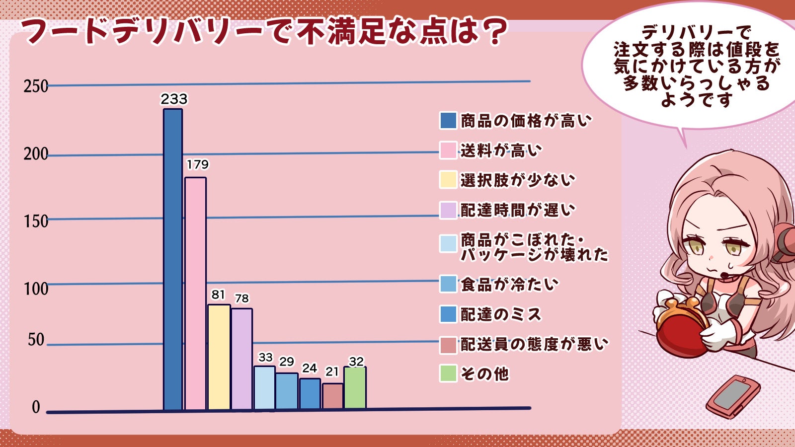約47%の人がフードデリバリーの金額と送料に満足していない!?