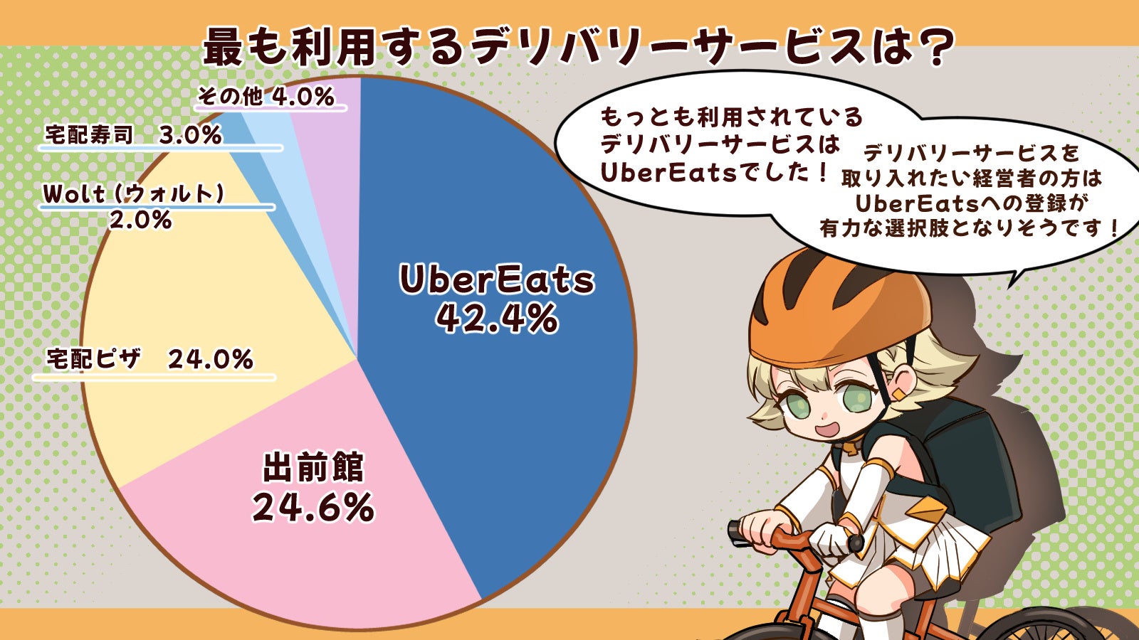 全体の実に42.4%をUberEatsが占める結果となりました。