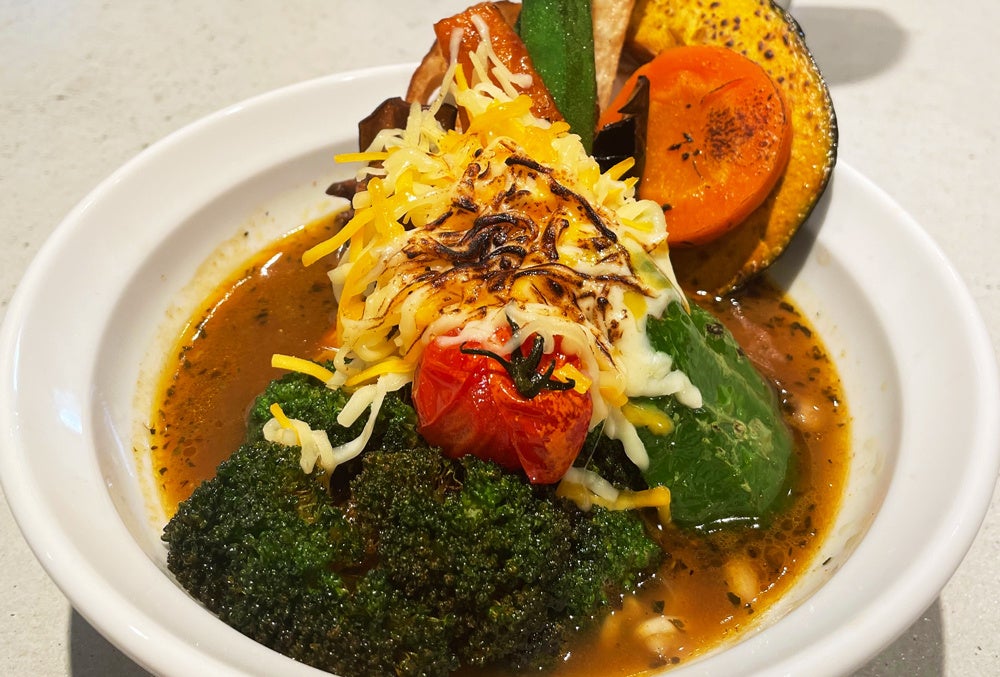 化学調味料、添加物を使用せず、鶏ガラ、豚骨のコラーゲンたっぷりのスープに香味野菜、果物、昆布などをブレンドしたスープカレーを加え、数種類のスパイスで仕上げたスープは絶品。