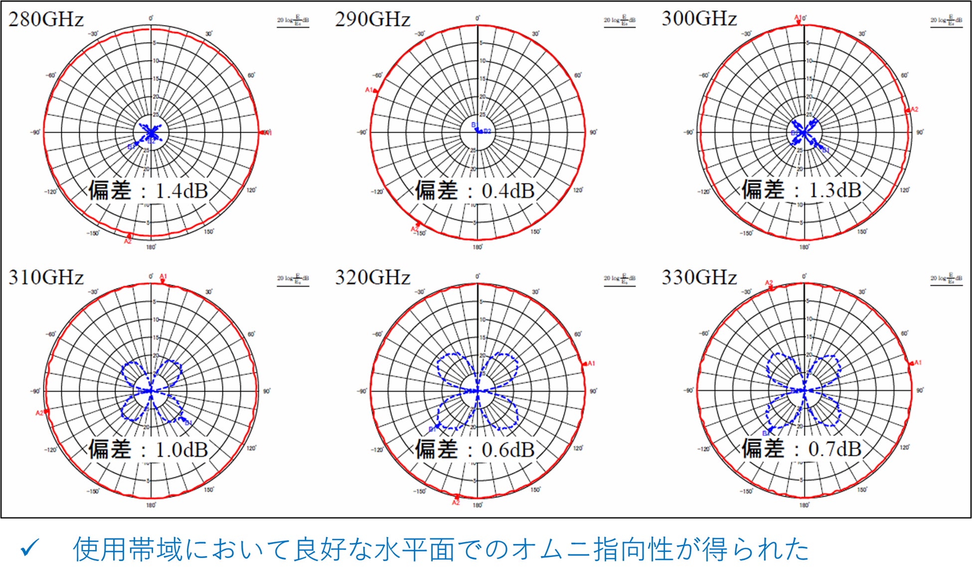 上記2点の結果から、広帯域で動作する良好な反射特性およびオムニ指向性が得られることを確認した。