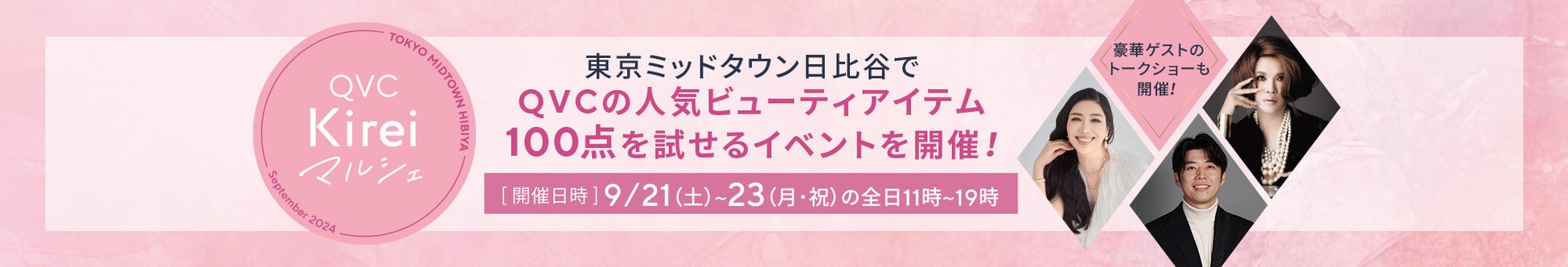お買い物チャンネルQVCは、シルバーウィークの9月21日(土)から9月23日(月・祝)の3日間限定で、東京ミッドタウン日比谷1階アトリウムにて話題のビューティーアイテムを手に取ってお楽しみいただけるスペシャルイベント『QVC Kireiマルシェ』を開催します。約100点の人気商品を楽しくトライしながら、お気に入りのキレイを探しにいらしてください。