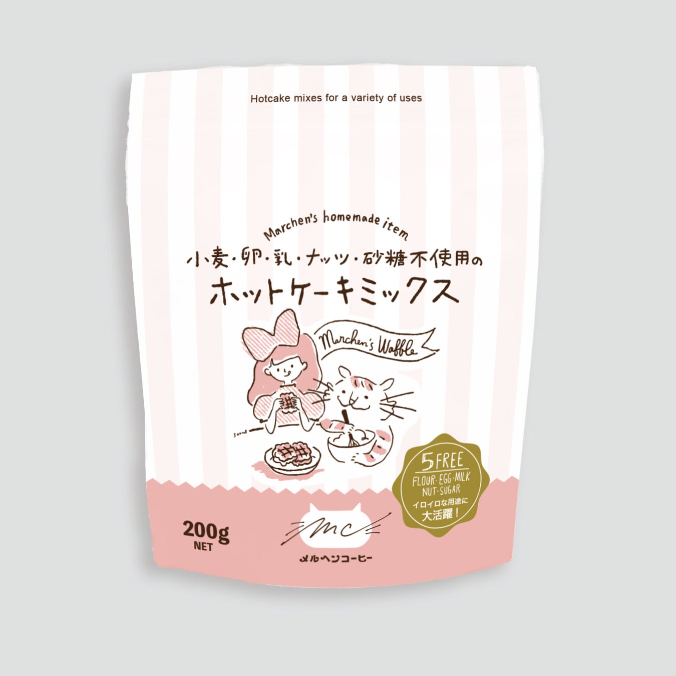 今回の商品開発は、お客様から「メルヘンコーヒーの真似して作ってみたがうまくできなかった」という声をいただき、お客様がご自宅でも作れる方法はないものかと約1年をかけて開発しました。卵や牛乳の代わりにお豆腐や豆乳など普段の冷蔵庫にある材料をプラスして簡単に作れるこのミックスは、ホットケーキなどのオヤツはもちろん、お好み焼きなどのおかずにも活用できます。