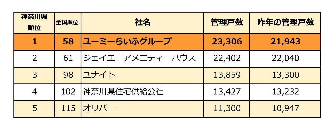 ユーミーらいふグループ(株式会社ユーミーホールディングス 本社:神奈川県藤沢市、代表取締役:木村光貴)は、この度、全国賃貸住宅新聞2024年8月5日第1615号に発表された「2024管理戸数ランキング」において、神奈川県内における賃貸管理戸数でNo.1を獲得いたしました。