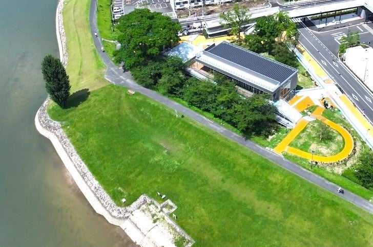 本事業では、都市公園法で定めるPark-PFI(公募設置管理制度)に基づき、公募対象公園施設として全6棟(芝生ひろば側5棟、水辺ひろば側1棟)の商業施設を、特定公園施設として遊具、屋外トイレ、園路等を整備しました。