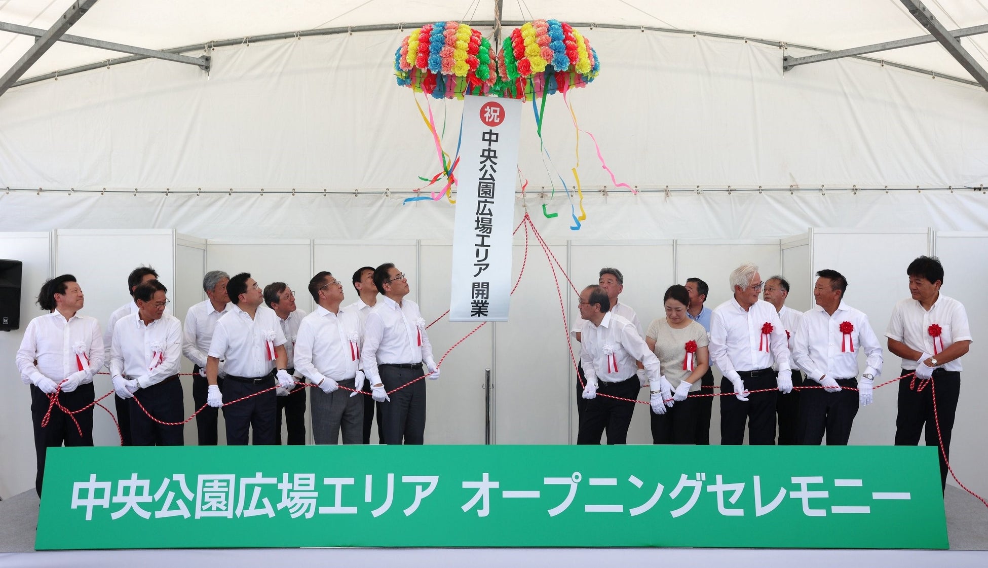 オープニングセレモニーでは、広島市の松井市長をはじめ、ご来賓の方々、事業者各社の代表によるくす玉開披が執り行われ、華やかに開業を迎えました。