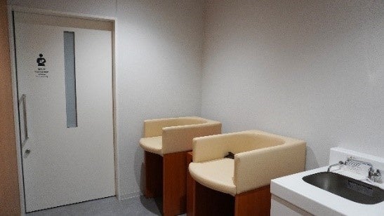 特定公園施設として芝生ひろば北側と水辺ひろばに1か所ずつ、公募対象公園施設として芝生ひろば南側の商業施設に1か所の計3か所の屋外トイレを整備しています。男女別トイレだけでなく、車いす利用者用トイレや⼦どもトイレ、おむつ交換スペース等をユニバーサルデザインに配慮して設計し、障がいを持つ方、高齢者、乳幼児連れのご家族など多くの方にとって訪れやすく快適に過ごせる公園をめざしました。なお、芝生ひろば南側のトイレには、授乳室も整備しています。
