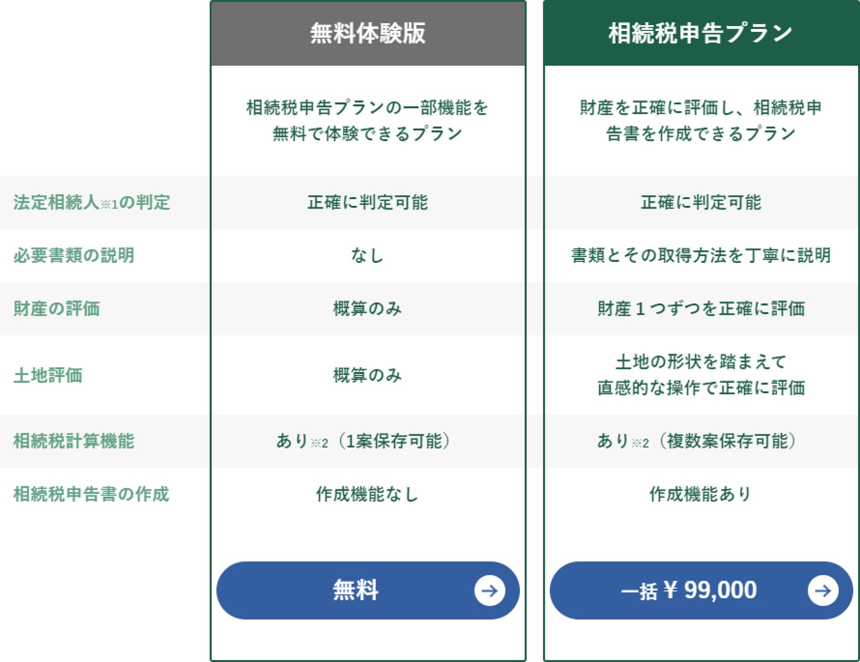 「無料体験版」と「相続税申告プラン」をご用意しております。