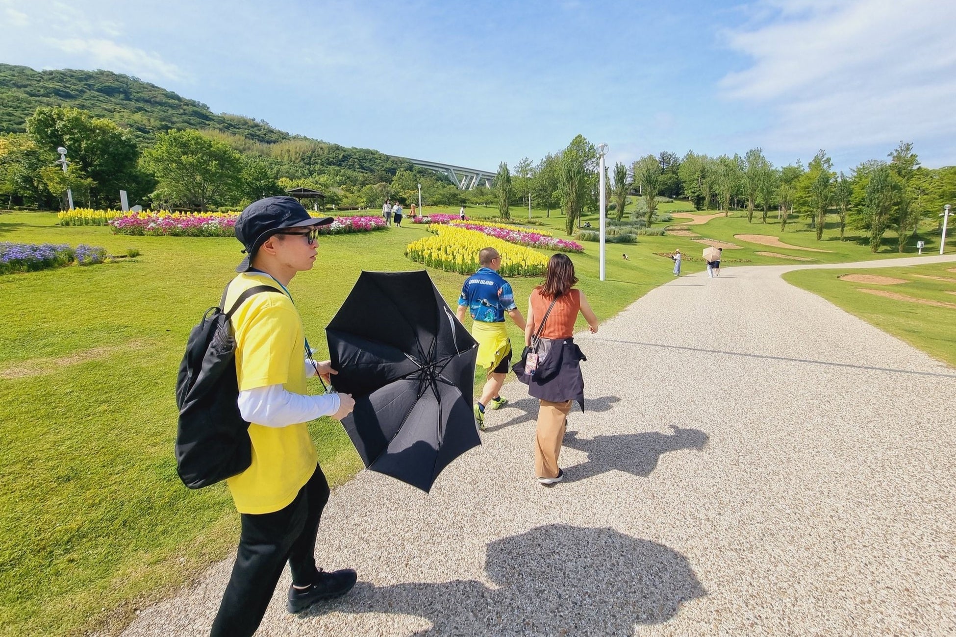 ①大分県別府市の大谷公園で受け付け。参加者たちが全員集合!