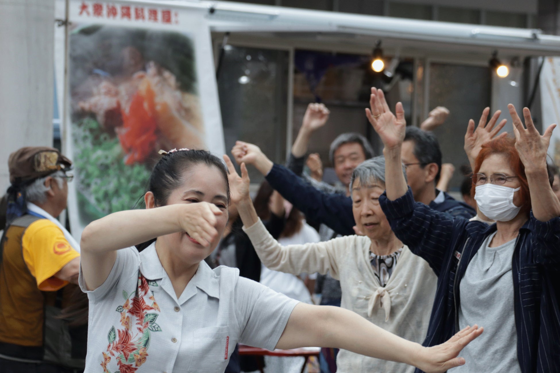 沖縄の踊り・カチャーシー。愛知沖縄県人会のご協力を得て会場で来場者にカチャーシーをレクチャーし最後はみんなで盛り上がります。8月17日(土)、18日(日)開催予定 17時〜20時 ※天候等により中止になることがあります