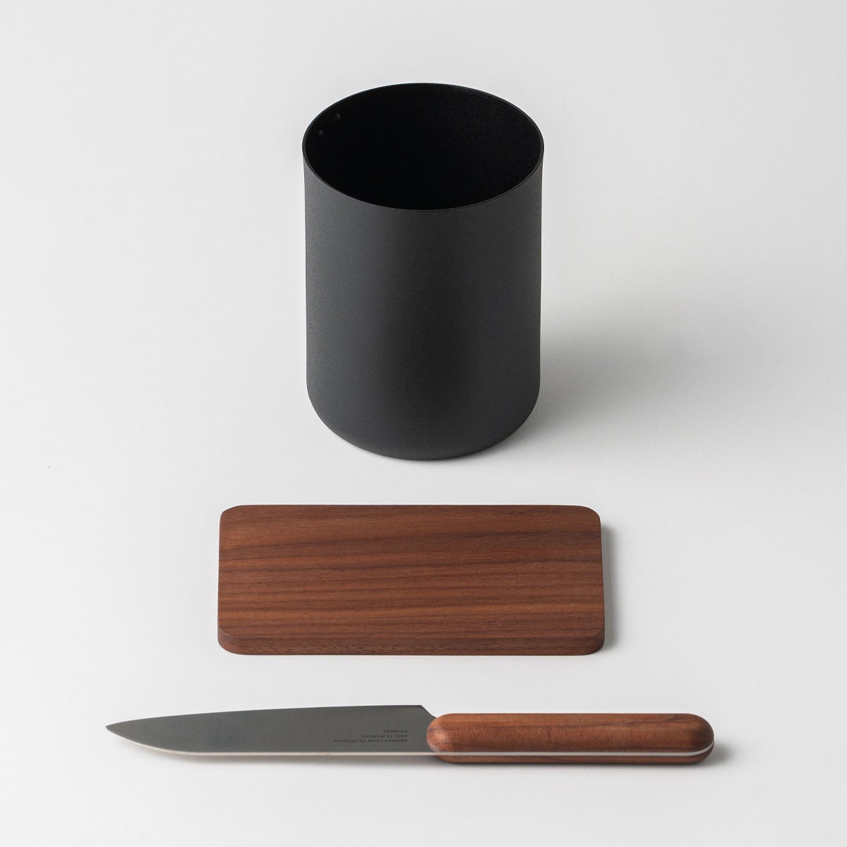 包丁について考えたら、切れ味だけではなく置き場所も作りたくなりました。専用のポットと組み合わせればさらに使いやすくなります。