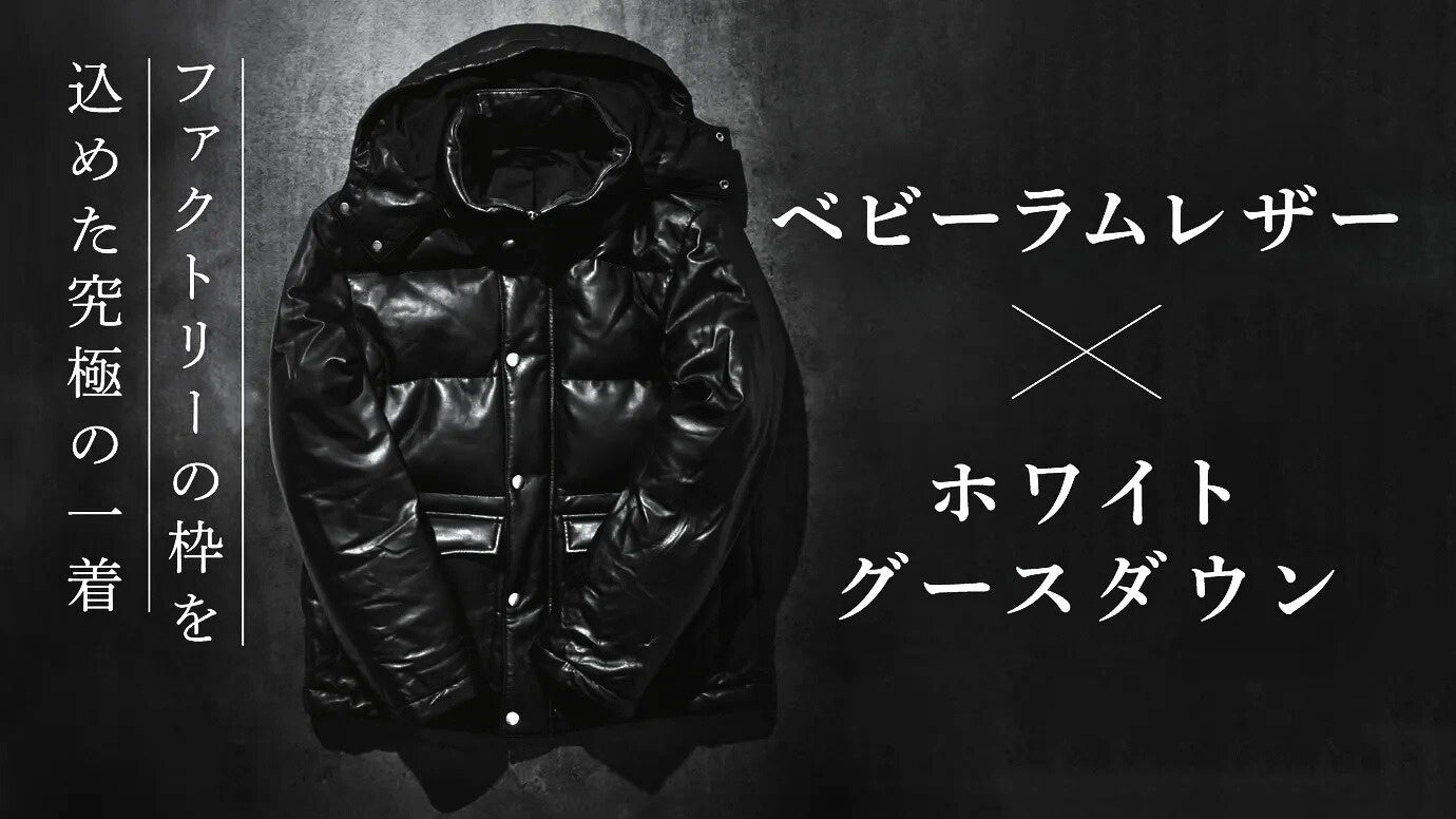 今回発売する「ベビーラムレザーホワイトグースダウンジャケット」は、驚くほど柔らかいベビーラムレザーとホワイトグースダウンを掛け合わせた、ファクトリーの粋をこめた一着です。