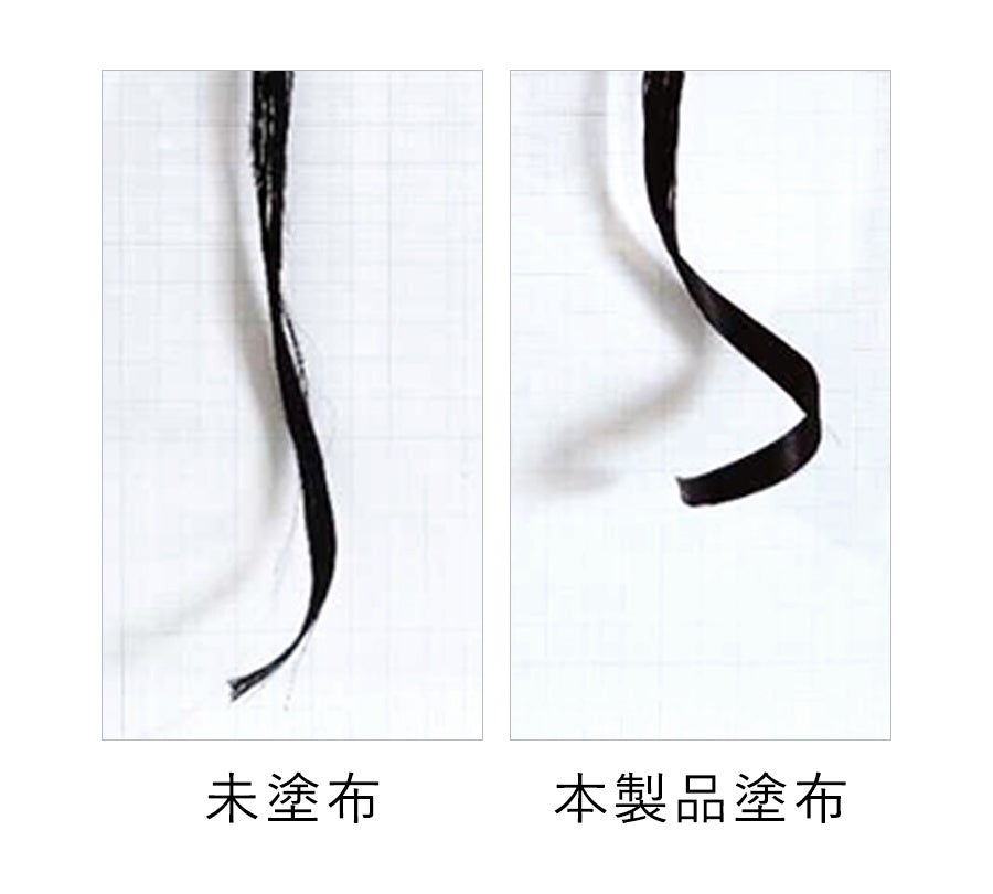 Lupilinaヘアオイルを塗布した毛束と、塗布していない毛束に対して180℃に設定したカールアイロンで10秒間加熱。温度30℃、湿度75%±5%の環境で12時間経過後、それぞれの毛束を撮影。