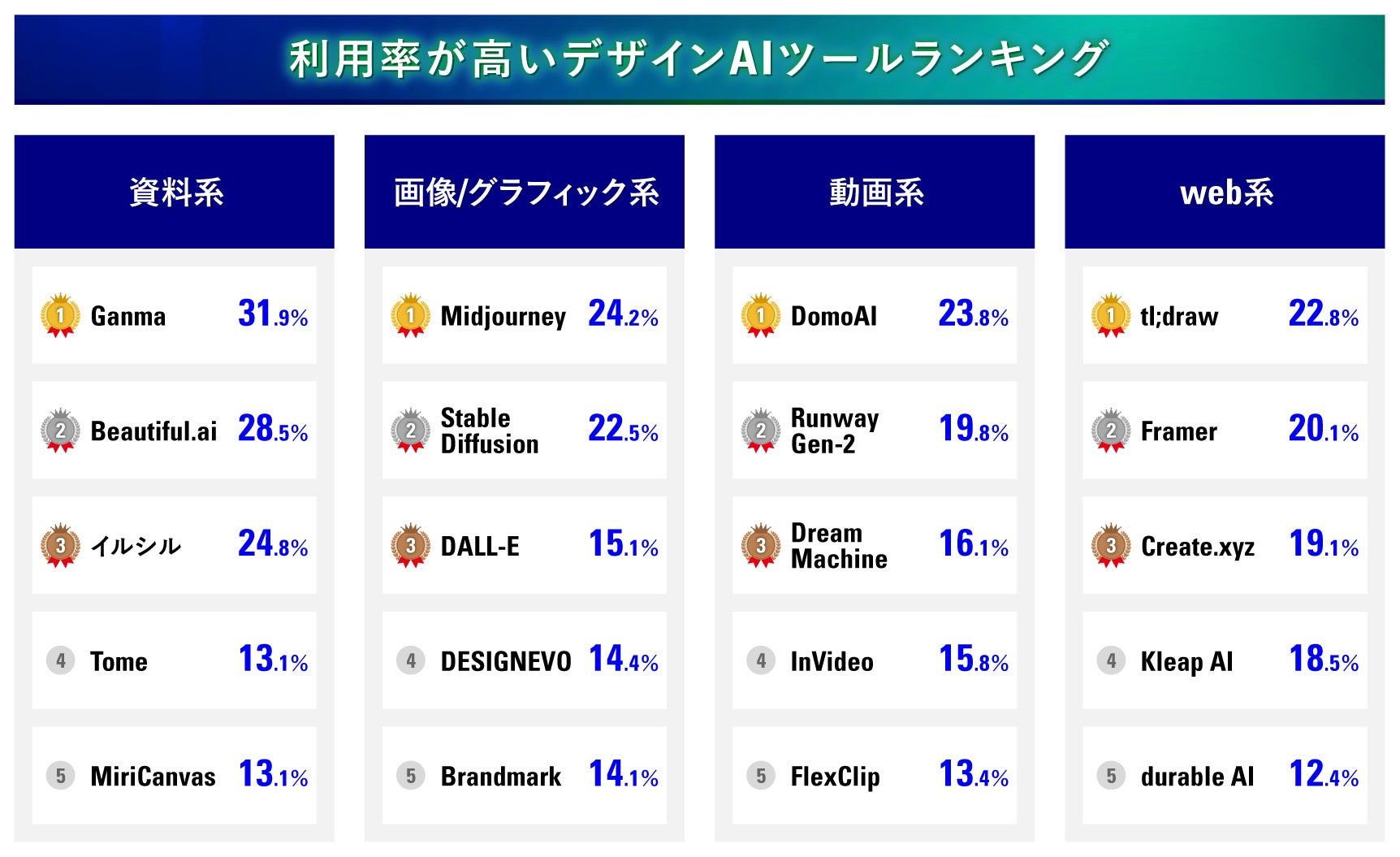 資料系AIツールで利用率が最も高いのも「Ganma」(31.9%)