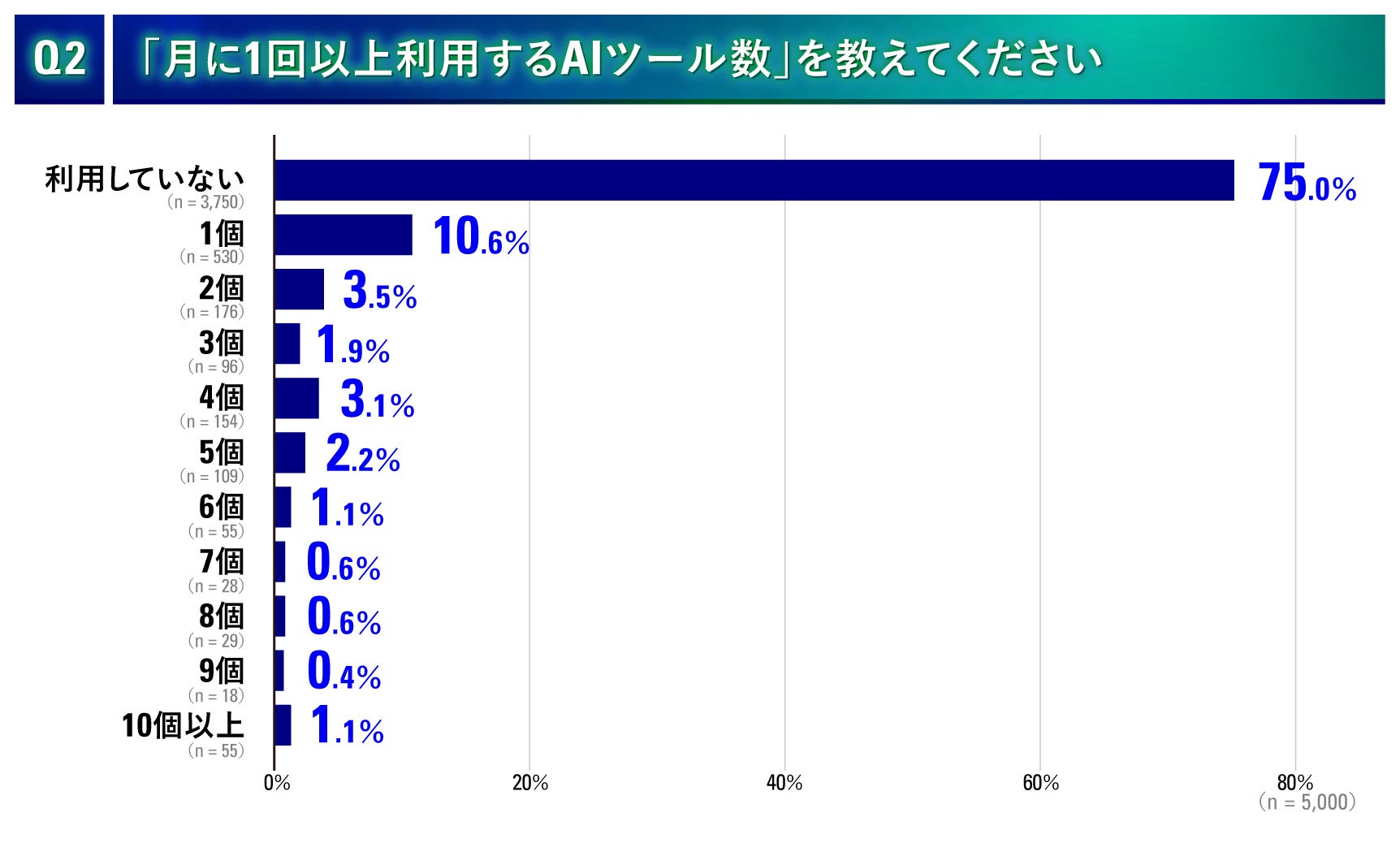 月に1個以上AIツールを利用する方は「25%」という結果でした。