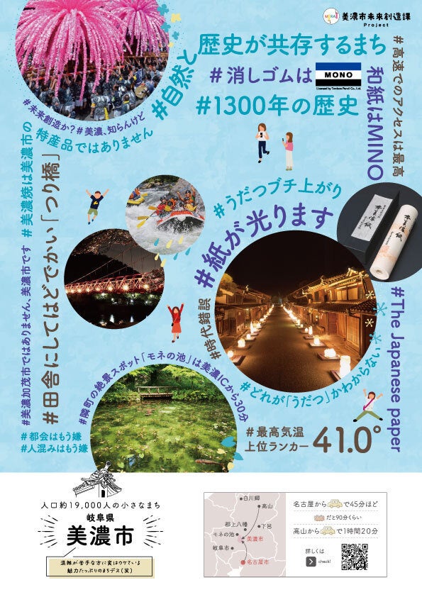 さらに8月4日(日)の美濃市民花火大会当日には、美濃市の認知度調査や、花火大会のアンケート調査を実施。効果検証を行い未来創造課が自ら、市の観光分野の課題を調査し、更なる深堀を行います。