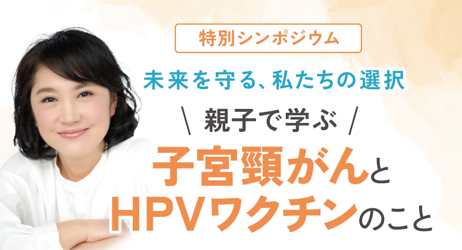 本事業の一環として、令和6年8月3日(土曜日)に子宮頸がんや子宮頸がん予防(HPV)ワクチンについての正しい知識が学べるシンポジウム、「未来を守る、私たちの選択 〜親子で学ぶ子宮頸がんとHPVワクチンのこと〜」を開催します。シンポジウムでは、女優、タレントで子宮頸がん罹患の経験をもつ原千晶さんによる講演や、専門医師を交えたパネルディスカッションなど、病気について、また予防の大切さについて学べるプログラムとなっています。