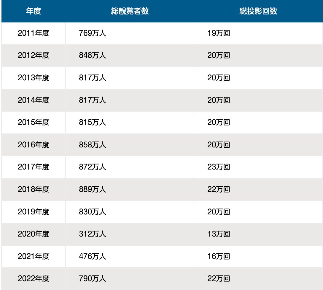 日本プラネタリウム協議会が2024年1月に発表したプラネタリウム基礎調査2023速報によると、2011年以降の日本におけるプラネタリウムの総観覧者数は増加傾向にあり、コロナ禍中で観覧者数が約60%落ち込んだものの、2022年度においてはコロナ禍前の2019年度と比較して95%まで回復しました。