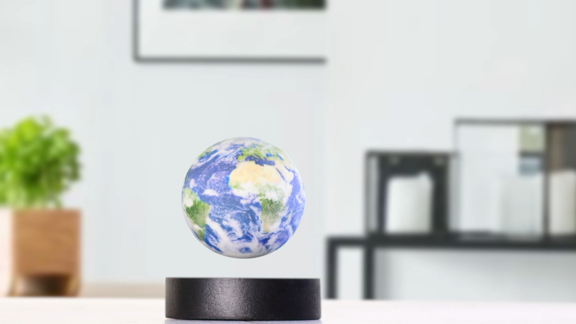 土台は磁気浮上技術を活用しています。 この技術により、天体が空中に浮かび、まるで宇宙にいるかのような未来的な空間を演出します。