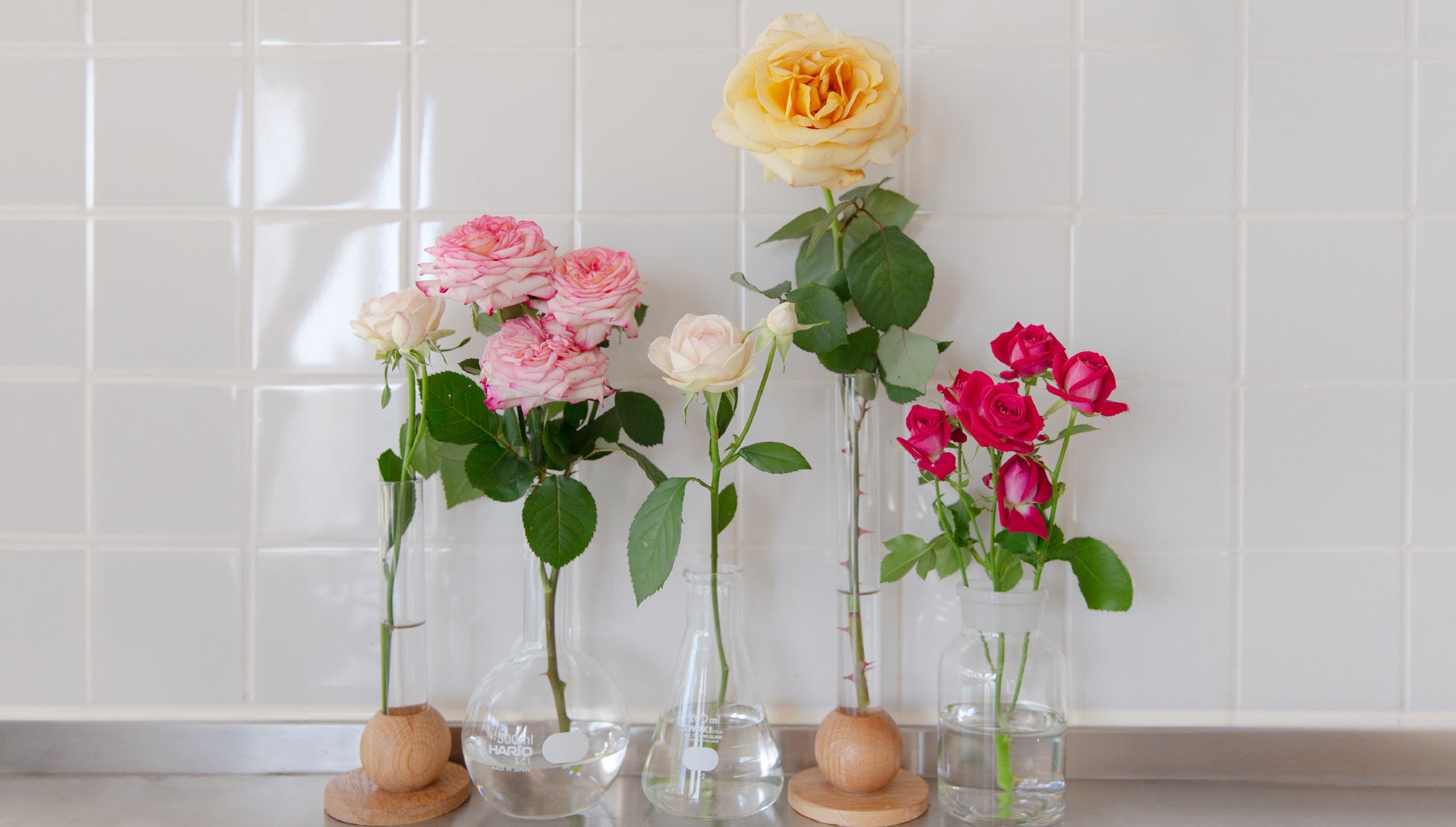 UNIQUE ROSEは、試験栽培の過程で生まれた特別な一本です。バラが新しい品種として流通するまでには多くの条件をクリアする必要があり、デビューできるのはほんのわずかという狭き門。試験栽培のバラは、個性的な美しさを持ちながらも、その大半は破棄されてしまうのです。