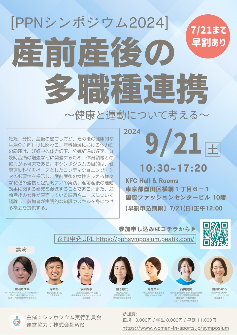 この度、PPNシンポジウム実行委員会は、第1回シンポジウム「産前産後の多職種連携 ~健康と運動について考える~」を開催いたします。