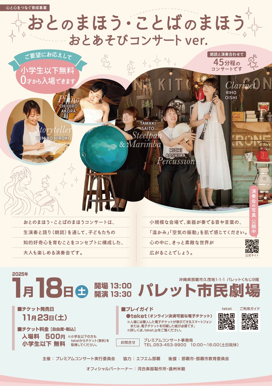 幼児から大人まで楽しめる演奏会「おとのまほう・ことばのまほうコンサート」沖縄県那覇市で特別公演