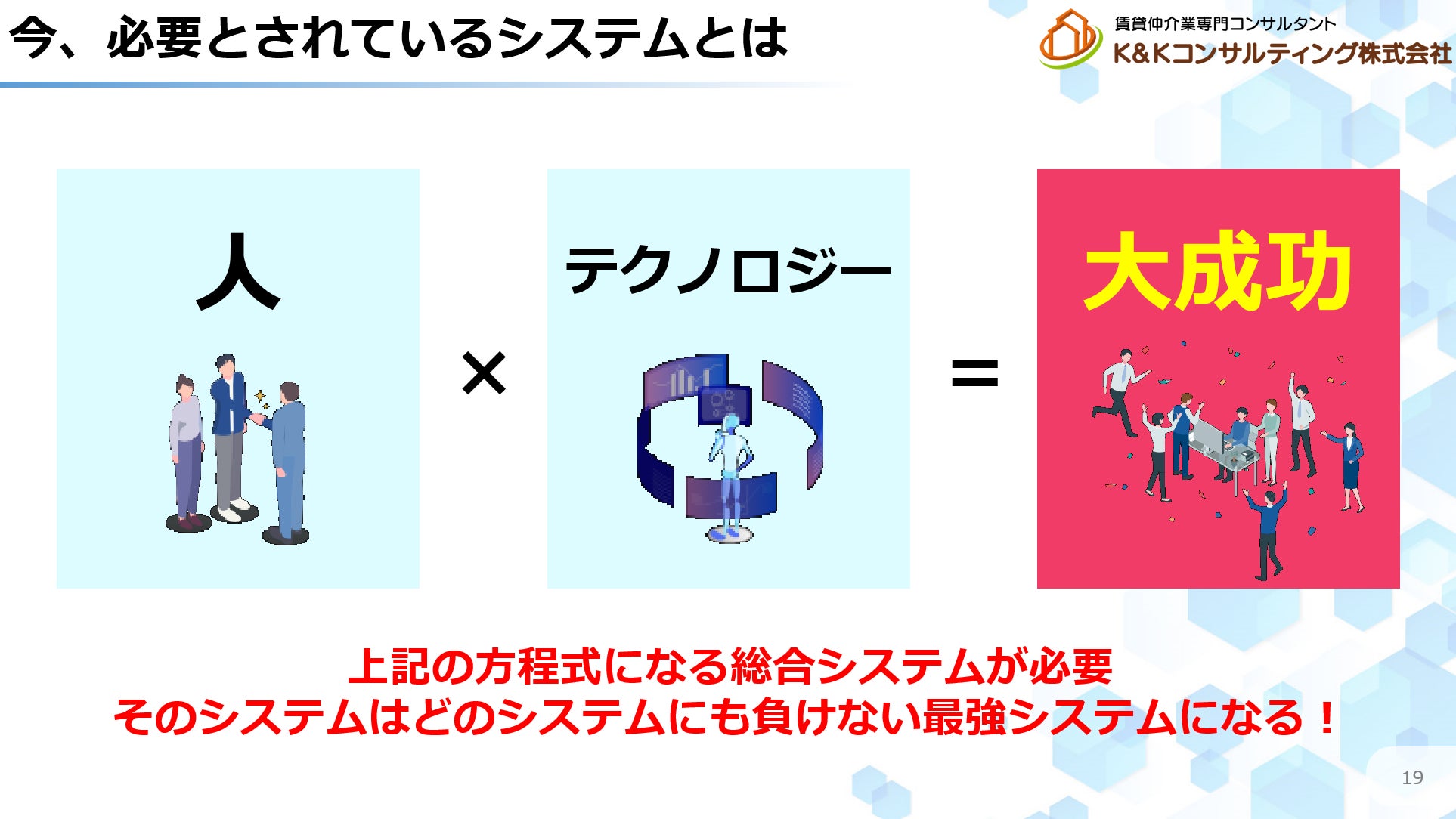 賃貸業界の生産性を向上させるシステムが登場!『人』×『テクノロジー』=『大成功』をコンセプトに作られたシステムです。
