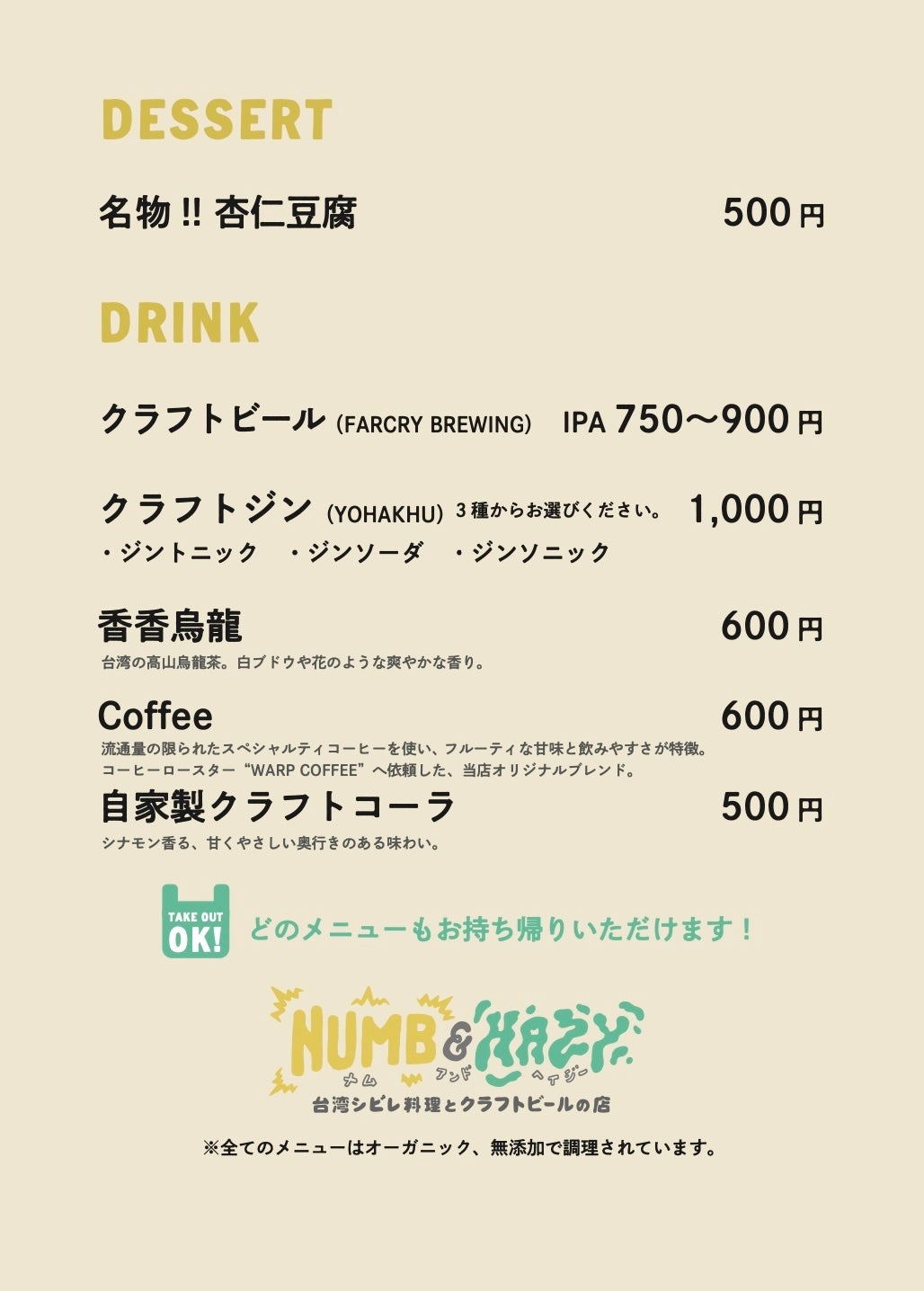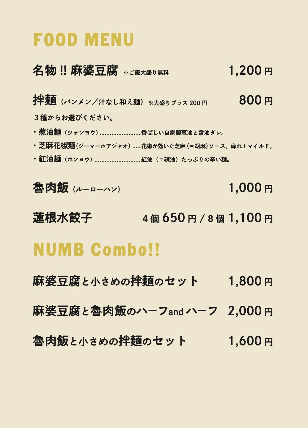 台湾シビレは、麻婆豆腐、拌麺3種類、水餃子、魯肉飯、杏仁豆腐のメニューをラインナップし、全てオーガニック、無添加となります。麻婆豆腐は完全オリジナルのレシピで調理し、新鮮な花椒と青花椒をミックスしたことで、爽やかな香りと口当たりの良い痺れを堪能できます。さらに、拌麺、蓮根水餃子、魯肉飯は台湾料理をインスパイヤ。3種類の拌麺のひとつである芝麻花椒麺はオリジナルの花椒オイルを加え、芝麻(胡麻)のコクに花椒の痺れが混じり合ったクセになる味わいが特長です。そして、これらの料理のお供には、群馬県桐生市にブルワリーを構える麹を使ったビールが魅力の「ファークライ ブルーイング」のクラフトビールと一緒に舌鼓をうっていただきます。(どのメニューもテイクアウト対応です。)