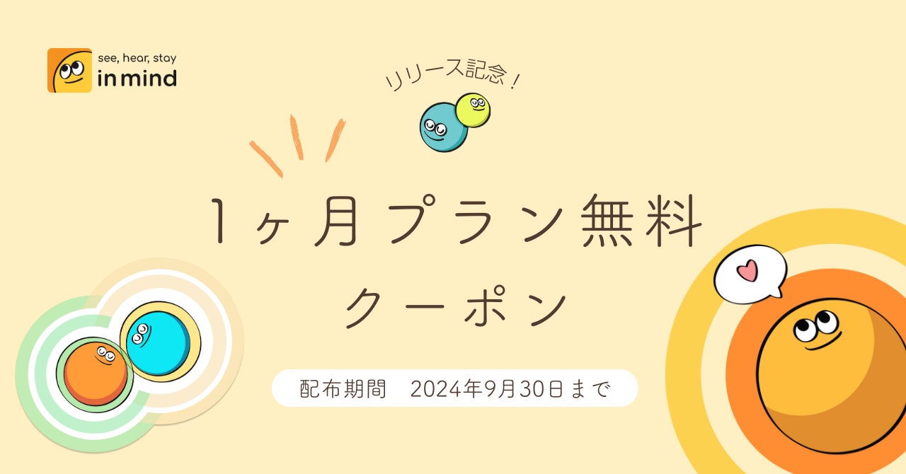 日本市場での展開を記念して、2024年9月30日までの間キャンペーン応募ページから応募していただいた方全員を対象に、1ヶ月間無料でin mindの有料機能をご利用いただけるキャンペーンを開催いたします。ぜひこの機会にご利用ください。