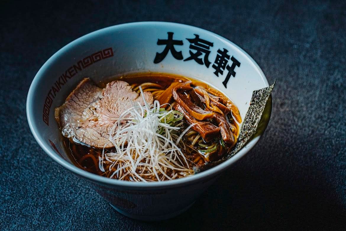 この度2024年7月29日(月)深夜24時より、元祖カジュアルラーメンバル「大気軒」をオープンいたします。営業は月曜日から木曜日の深夜限定。「宇宙×昭和ロマン」をテーマにラーメン、汁なし麺、おつまみ、ジョッキカクテルをメインとした元祖カジュアルラーメンバルとなります。ユーフォー醤油ラーメンは500円(税別)で提供。料理は日本の四川料理界の至宝・井上和豊氏、カクテルはカクテル界のレジェンド・鈴木敦氏という豪華メンバーの監修による「カジュアルラーメンバル」という新しい体験をぜひお楽しみください。