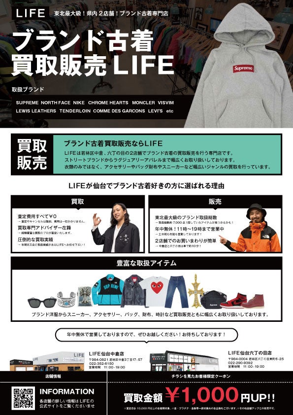 オープンに合わせて、弊社ブランド買取販売専門店LIFE仙台中倉店の店舗リニューアルも行いました。