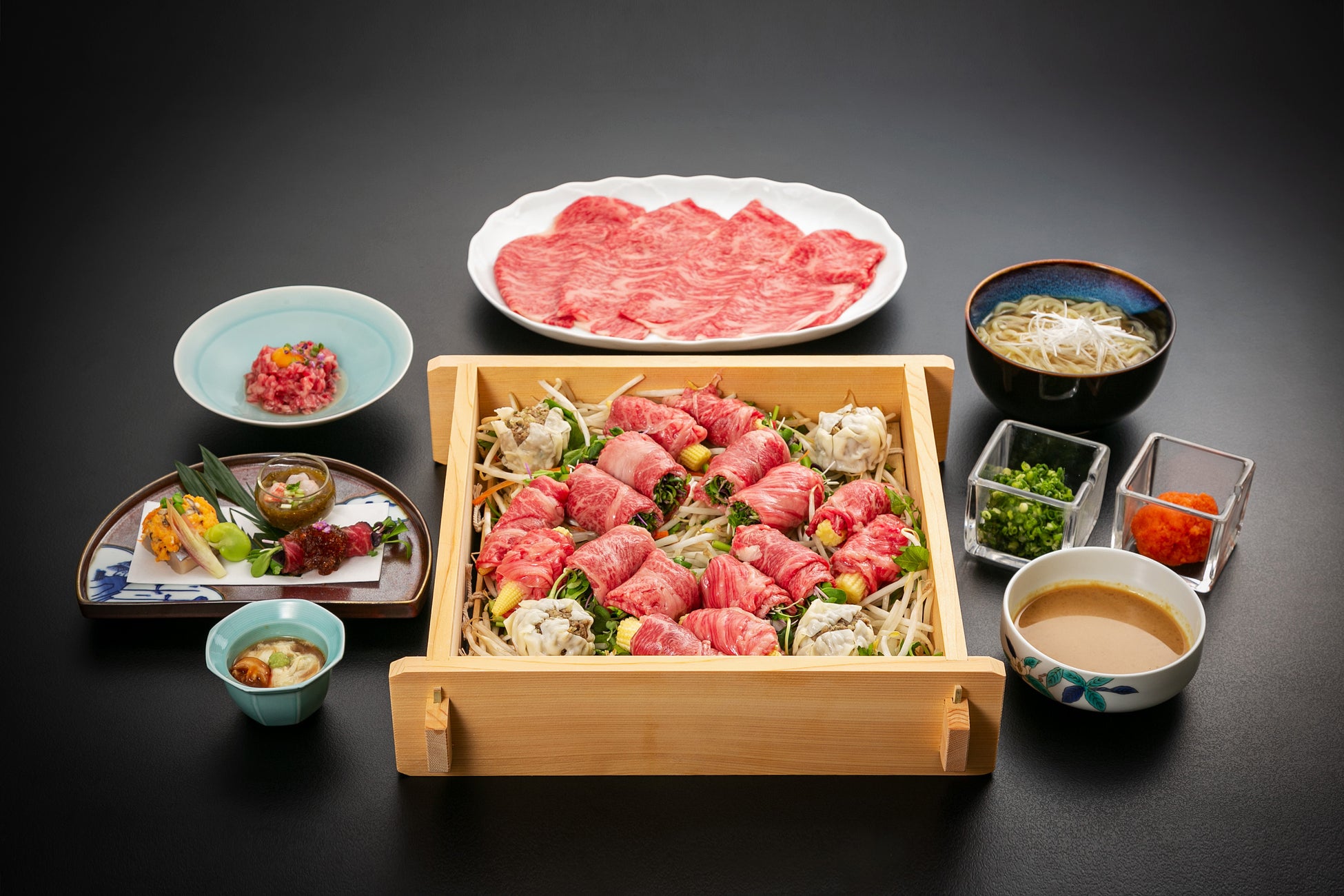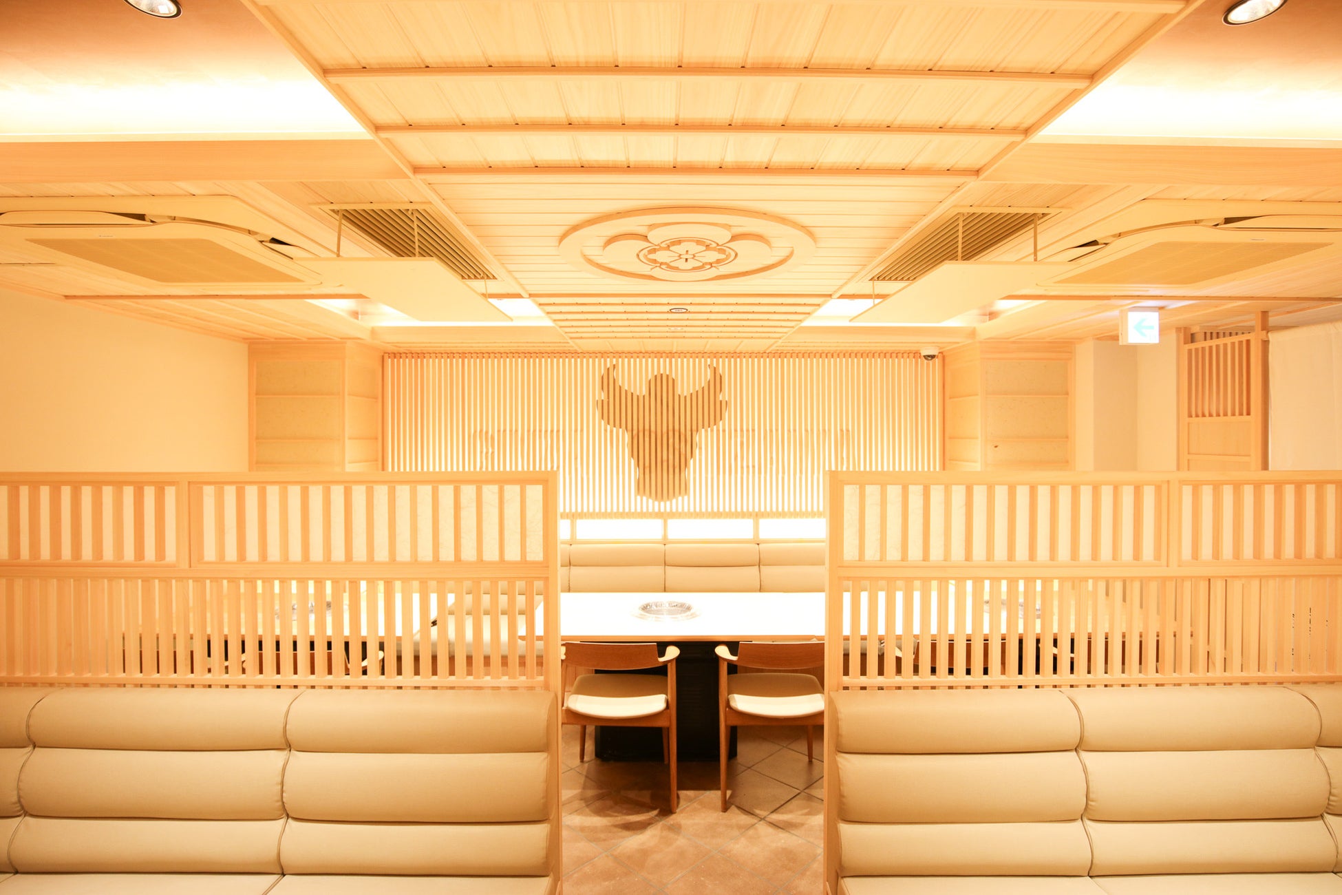 吉澤の和牛をお好みのスタイルでお楽しみいただける肉処。伝統のすき焼きや新たにスタートした焼肉など、おいしいお肉を心ゆくまでご堪能いただけます。柔らかい光に囲われた檜の格子が美しい空間は、ご家族での集まりや会食など多彩なシーンでご利用いただけます。