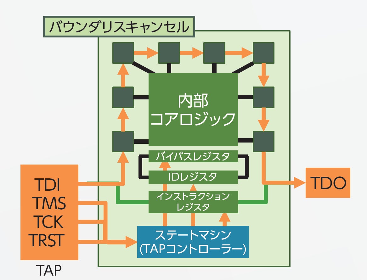 JTAG検査は、高密度実装の検査問題を解決するために考案された検査手法です。デバイスの端子が基板の裏側に隠れていても、実装不良を検出できる特長を持ち、デジタル回路の検査に適しています。