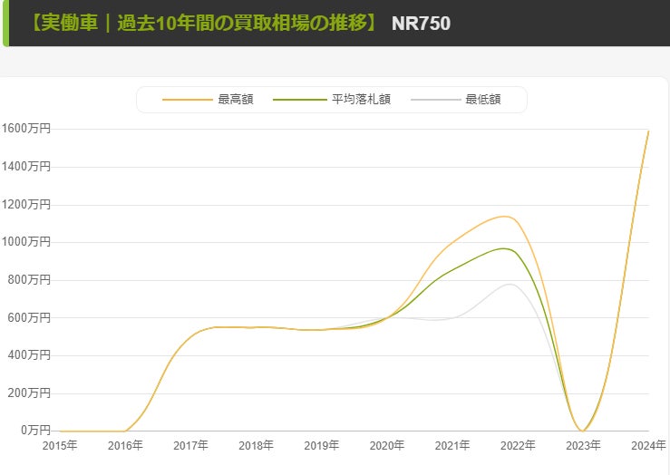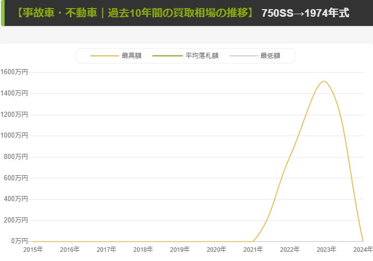 日本国内の業者間オークションでは過去10年間に2台の取引が記録されており、2022年には801万円、2023年には1506万円で落札されている。