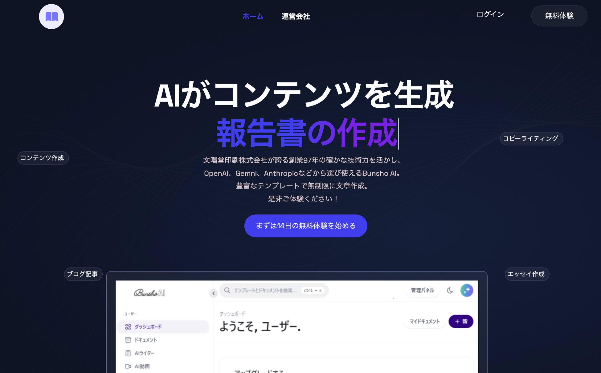 文唱堂印刷株式会社(創業97年)は、最新のAI技術を駆使した新しい文章生成ツール「文唱AI」を正式にリリースしました。このツールは、企業の日々のドキュメント作成を飛躍的に効率化し、品質の高い文章を簡単かつ迅速に作成することを可能にします。